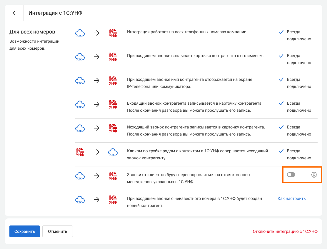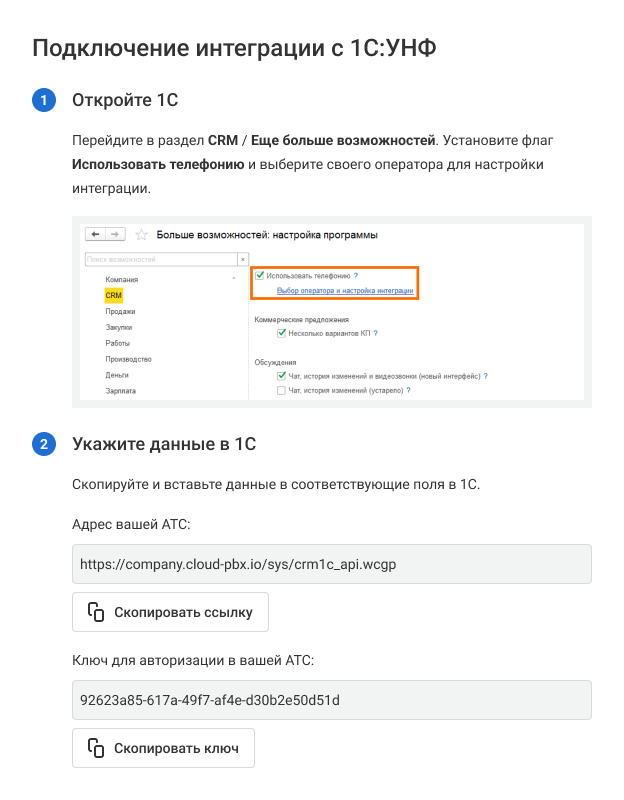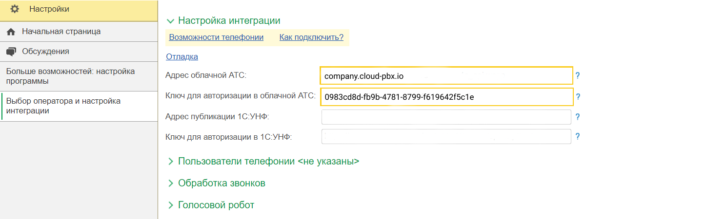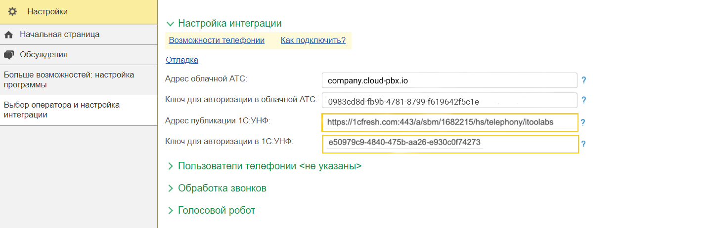 Инструкция по интеграции 1C:УНФ и Виртуальной АТС