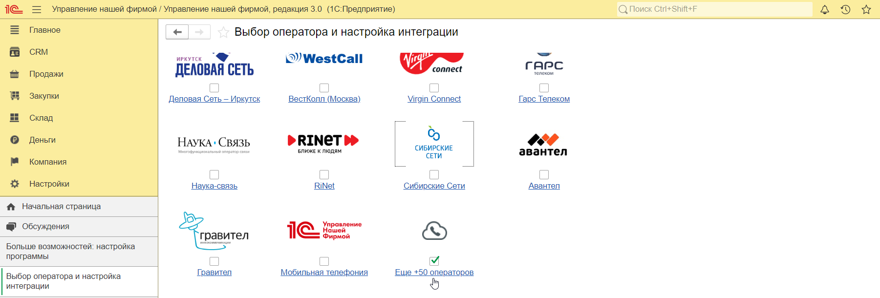 4. На новой вкладке «Выбор оператора и настройка интеграции» поставьте галку около «Еще +50 операторов».