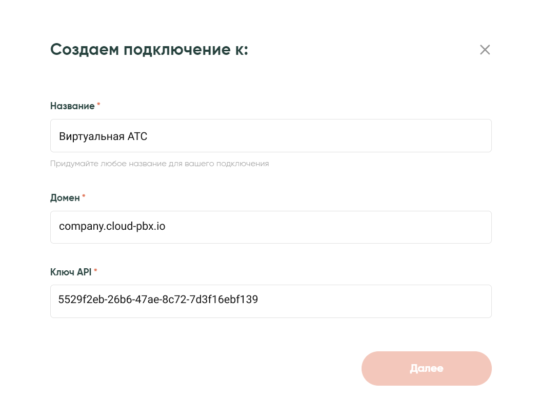Инструкция по интеграции Облачной АТС и сервиса Albato