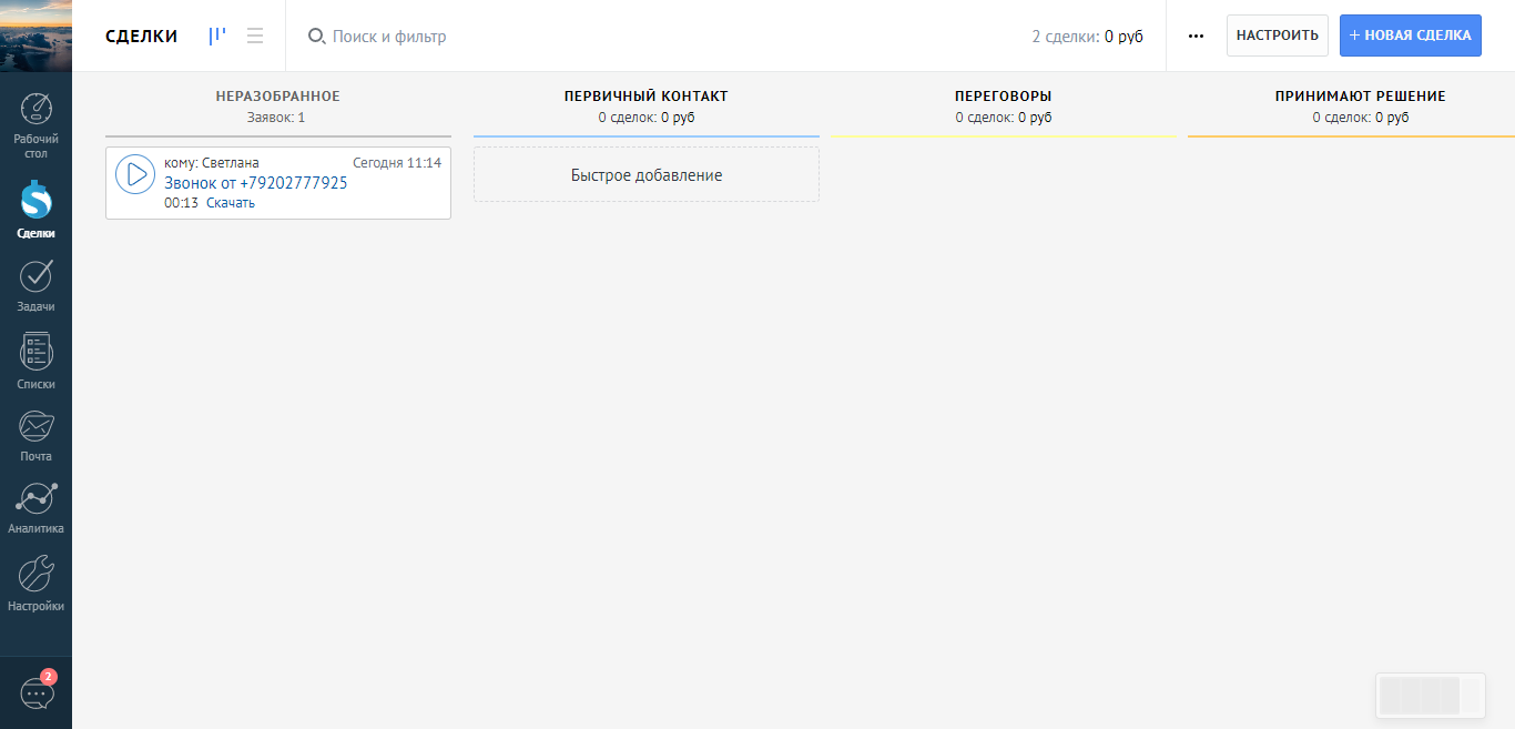 После того, как вы настроите все необходимые сценарии, начинайте пользоваться интеграцией amoCRM с Облачной АТС.