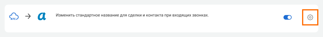 Если нужно будет изменить шаблон названия для сделки и контакта, нажмите на шестеренку в выбранном сценарии интеграции.