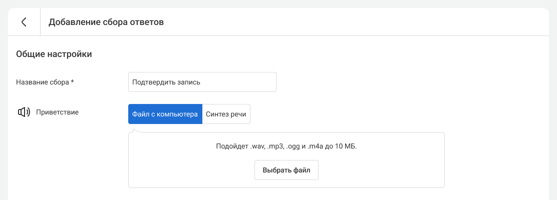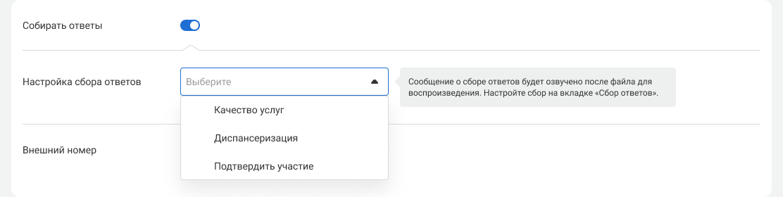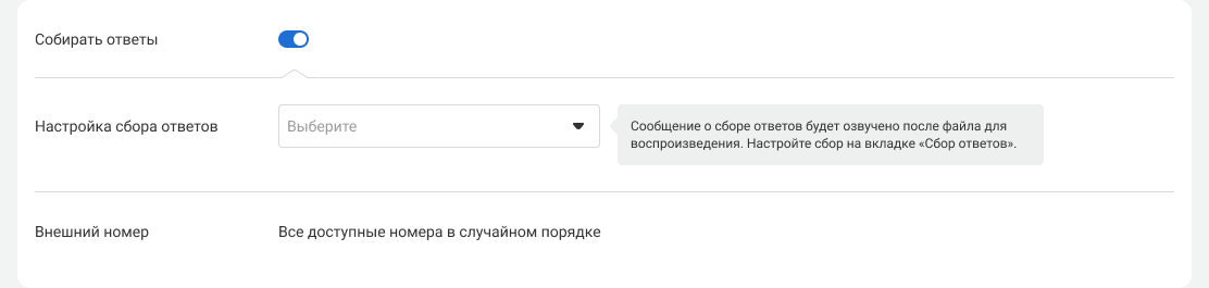 3. Включите настройку «Собирать ответы». В этом случае клиент сначала услышит аудиосообщение из задания на автоинформирование, а затем – приглашение пройти опрос.