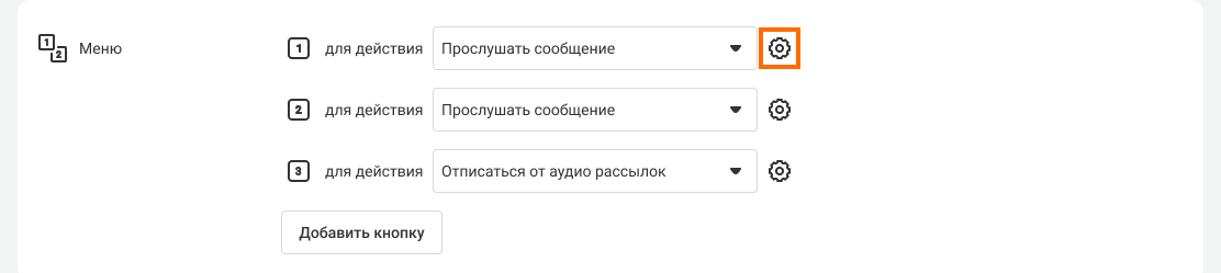 4. Для каждой кнопки голосового меню, которая упоминается в аудиосообщении, укажите, что произойдет при нажатии.