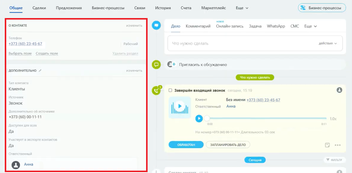 Чтобы сотрудникам не приходилось вручную заполнять информацию о клиентах в Битрикс24, АТС может передавать информацию в CRM автоматически. Это поможет сэкономить время менеджеров и снизить количество опечаток.