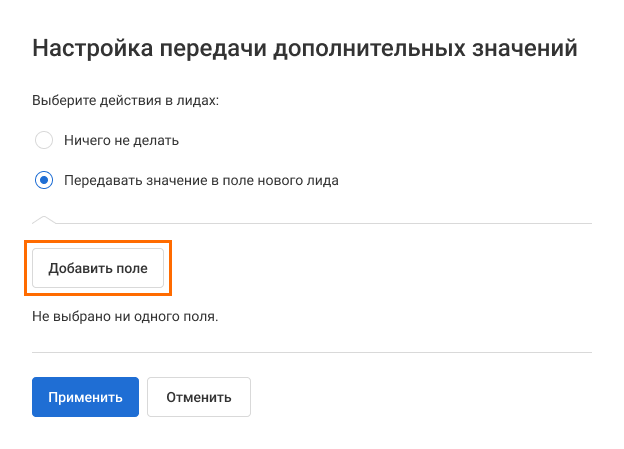 5. Когда соотнесете все пользовательские поля и данные для передачи, нажмите «Применить».
