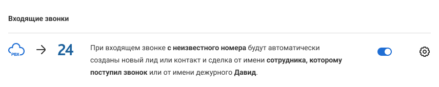 1. Чтобы при новом входящем или исходящем звонке в Битрикс24 автоматически создавался лид или сделка с контактом, нужно включить создание этих сущностей в АТС.