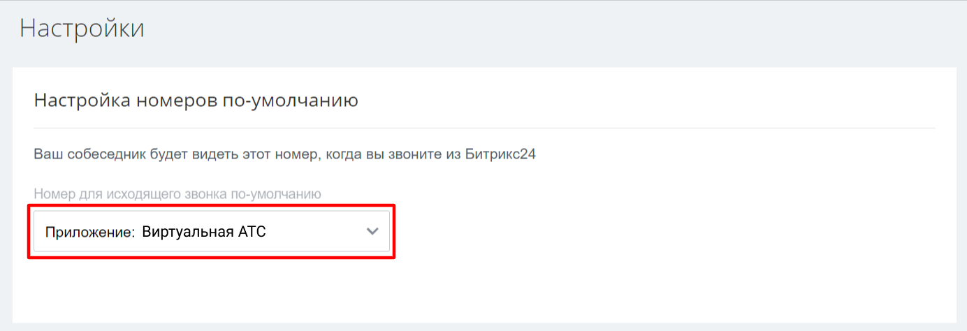 Откройте «Общие настройки». В выпадающем списке «Номер для исходящего звонка по умолчанию» должно быть выбрано Приложение вашей Виртуальной АТС. Нажмите «Сохранить».