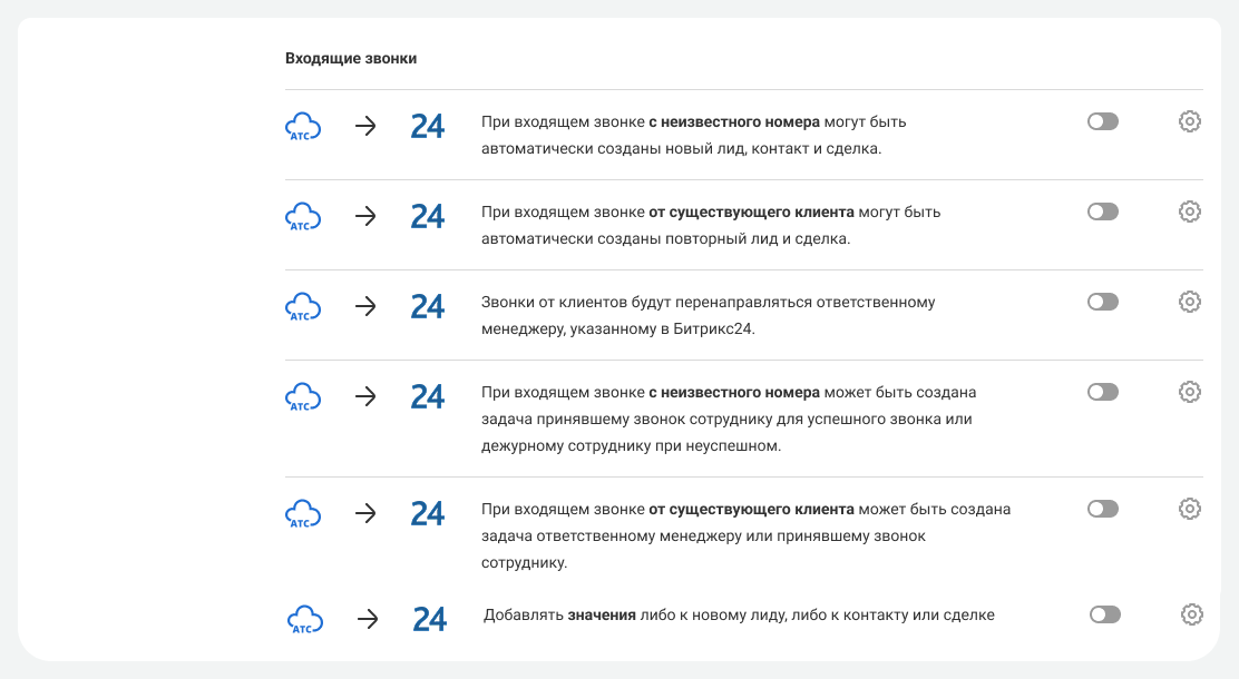 5. Настройте сценарии (правила) интеграции Битрикс24 и Виртуальной АТС.