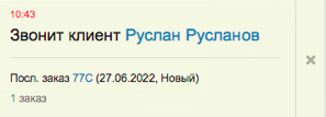 Во время входящего звонка будет всплывать карточка клиента с его именем и заказом, сотруднику не придется переспрашивать и уточнять что-либо, что экономит время и повышает лояльность клиента.