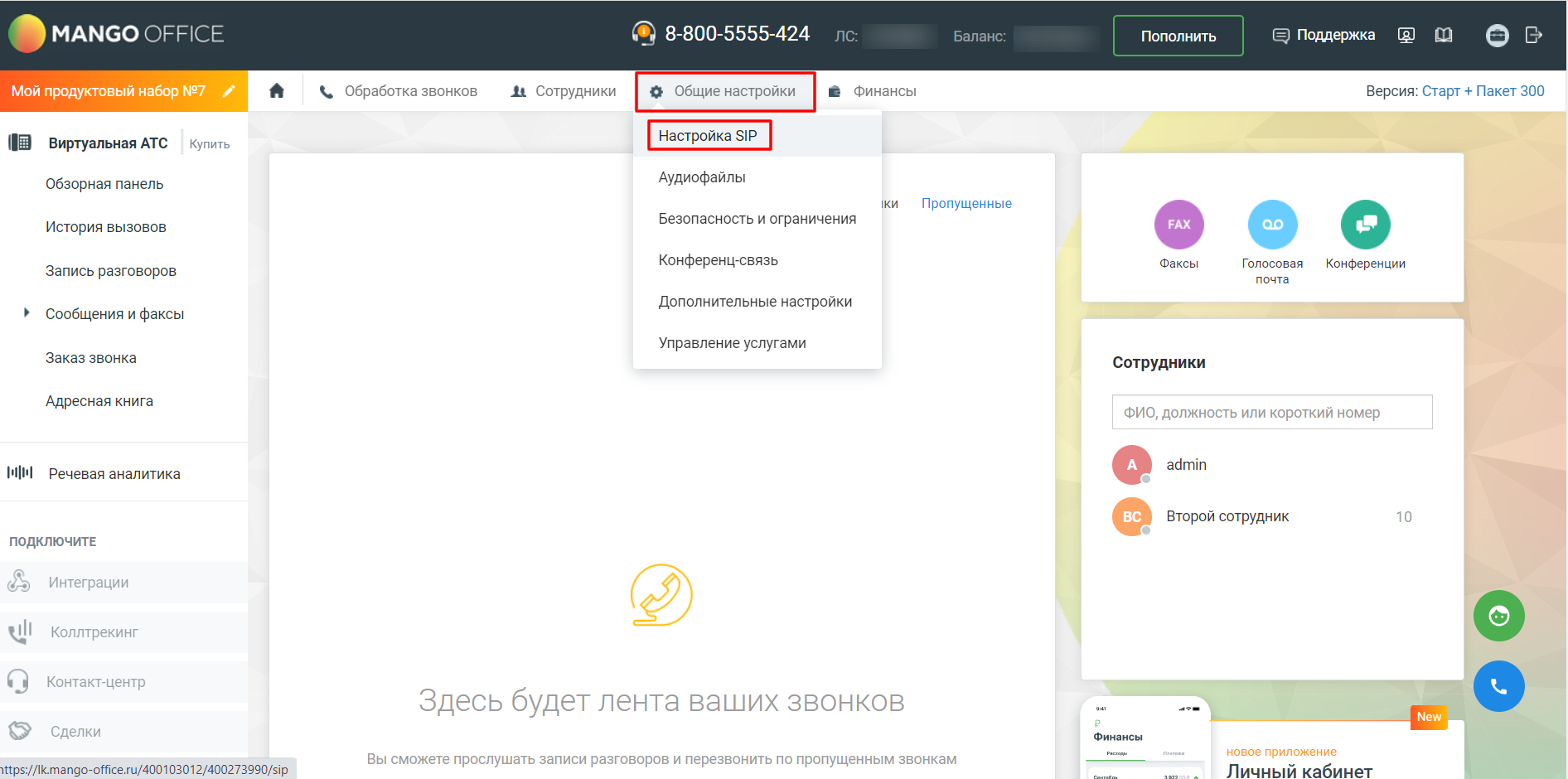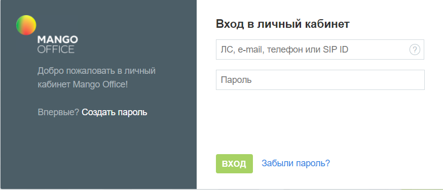Для начала настройки войдите в личный кабинет Mango.