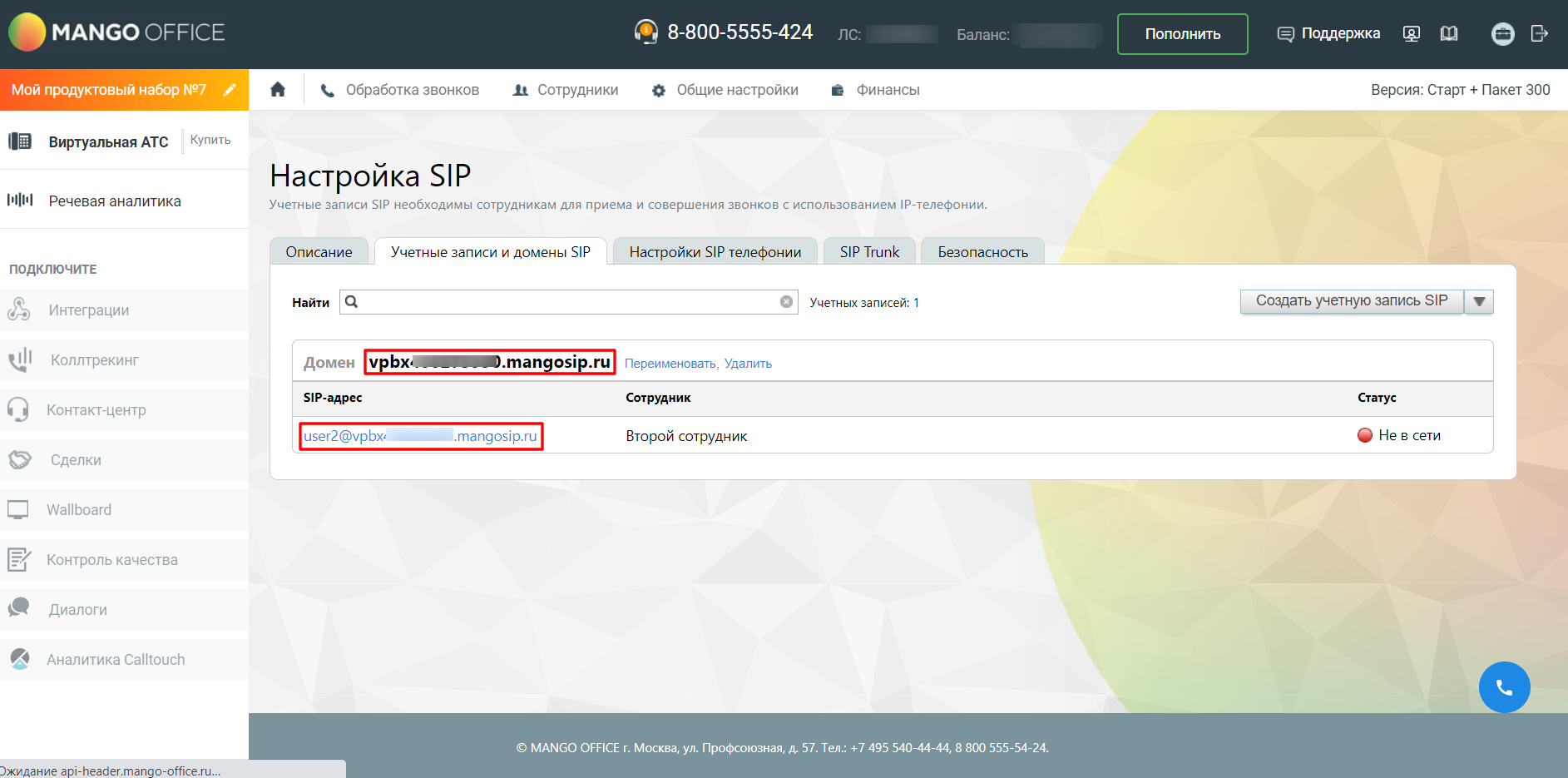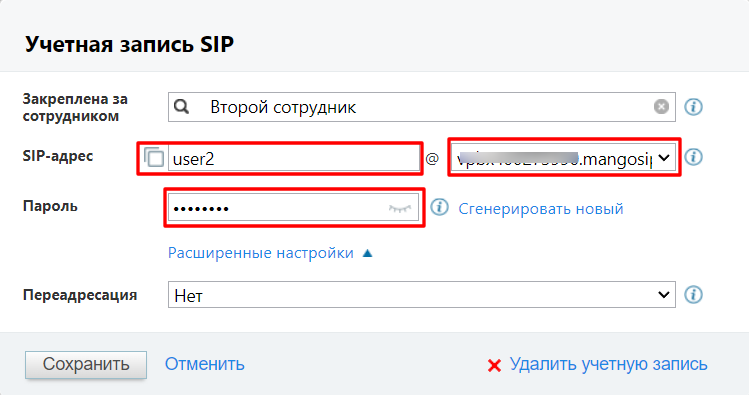Далее перейдите в учетную запись, которая будет использоваться для подключения/переадресации звонков в ОАТС. Обратите внимание: проверьте настройку переадресации всех звонков на сотрудника, учетная запись которого будет использоваться для подключения/переадресации звонков в ОАТС.