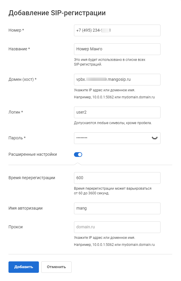 Перейдите в «SIP-регистрации». Нажмите «Добавить».