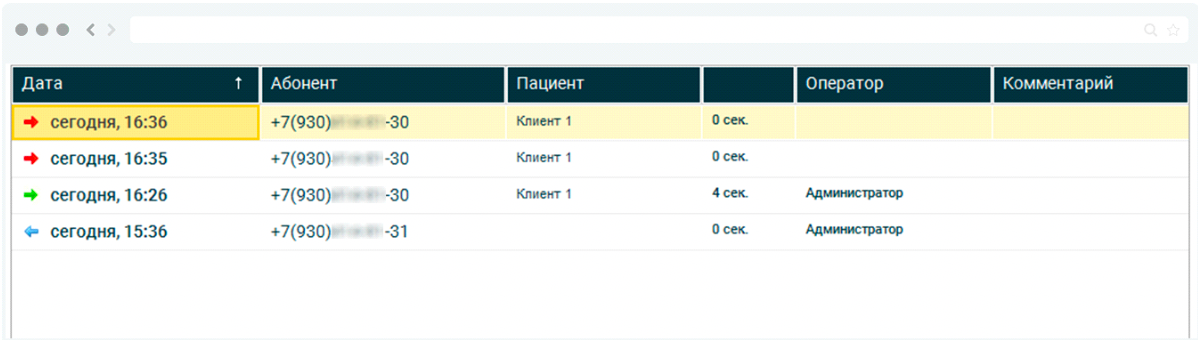Все звонки фиксируются в специальном разделе «Журнал вызовов» на стартовой странице.