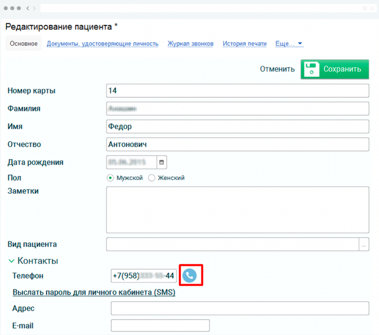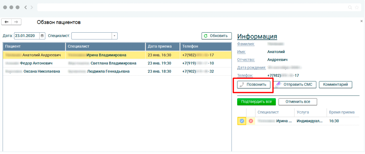 Совершать исходящие звонки и отвечать можно прямо в МИС МедАнгел: