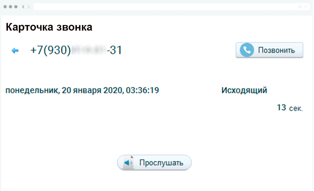 Доступно прослушивание звонков, которые поступили за последние сутки.
