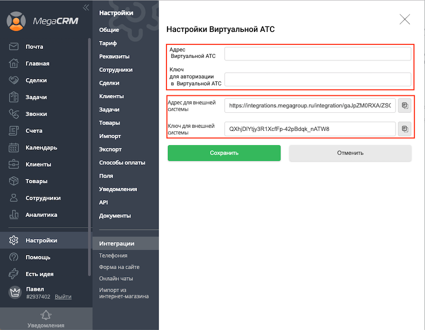 Инструкция по интеграции MegaCRM и Виртуальной АТС