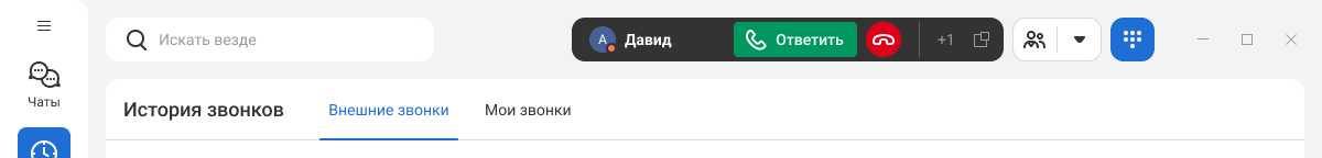 Прием и совершение вызовов в Корпоративном мессенджере