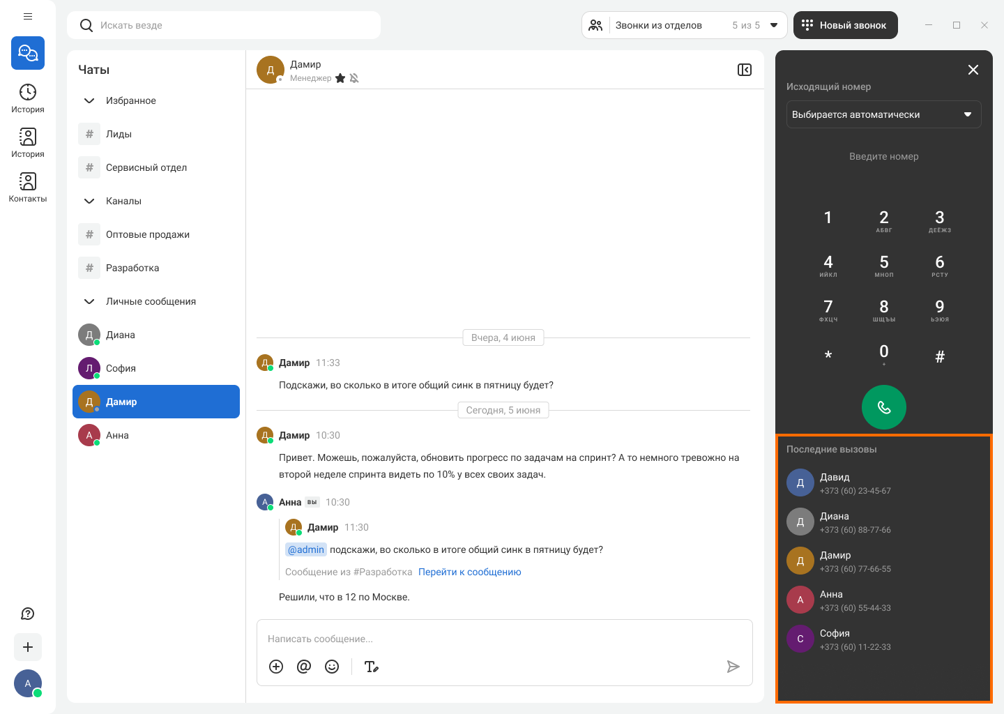 В Корпоративном мессенджере удобно созваниваться как с коллегами, так и с клиентами. Ниже расскажем о том, как принимать и совершать звонки.