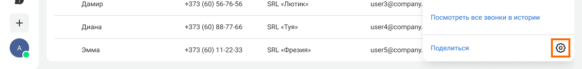 В карточке контакта на вкладке «О контакте» нажмите на шестеренку.