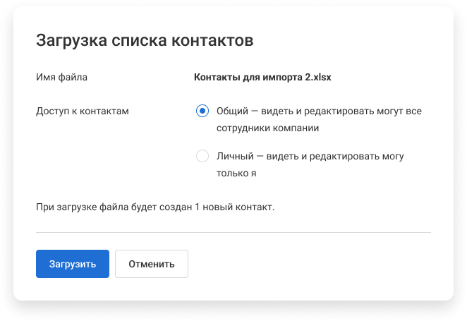 5. Выберите, кто должен иметь доступ к этому списку контактов — только вы или все сотрудники компании.