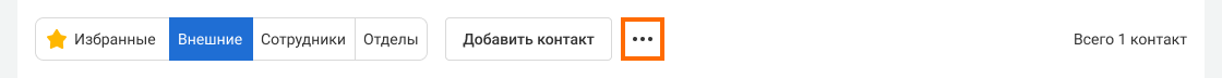 1. В разделе «Контакты» справа от кнопки «Добавить контакт» нажмите на три точки и ниже — на кнопку «Импортировать контакты».