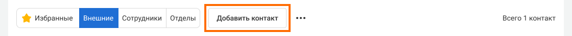 В списке контактов нажмите на кнопку «Добавить контакт».