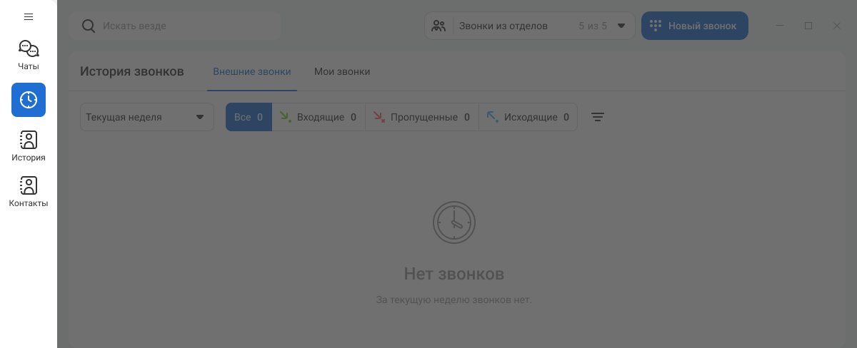 Чтобы быстро найти нужного клиента, коллегу или канал, воспользуйтесь единым окном поиска. Прямо из окна поиска можно написать или позвонить контакту.