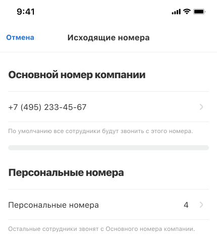 • Общего номера компании — с него будут звонить сотрудники и отделы, у которых нет персональных или региональных номеров.