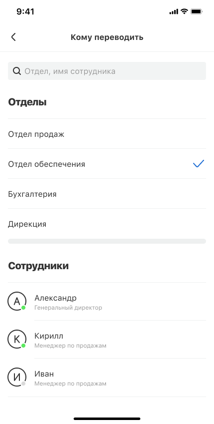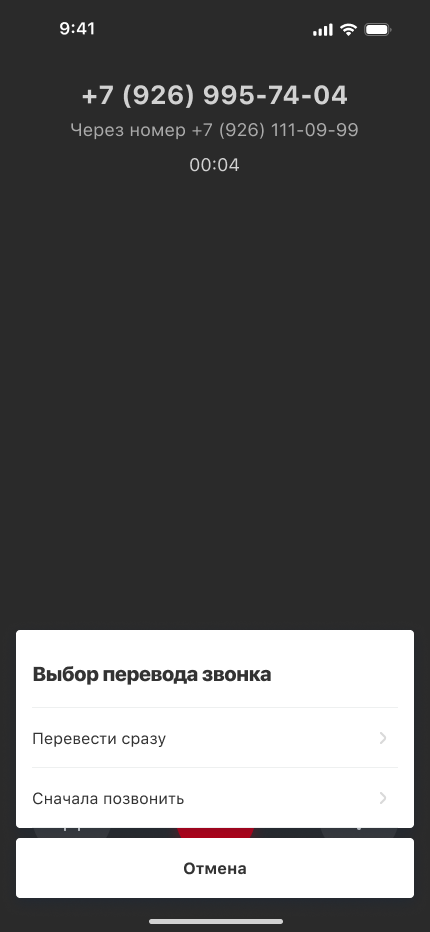 Любой звонок можно перевести на отдел или коллегу. Есть два сценария перевода: