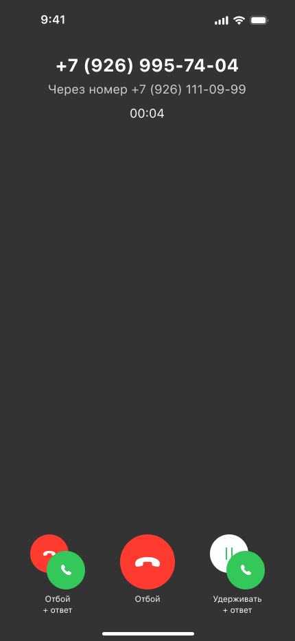 Если сотруднику кто-то позвонит во время разговора, он не пропустит такой звонок — вызов уйдет на вторую линию. Сотрудник услышит короткие гудки, а на экране появится возможность отклонить звонить звонок на второй линии или ответить на него. Что бы ни выбрал сотрудник, его текущий звонок не прекратится.