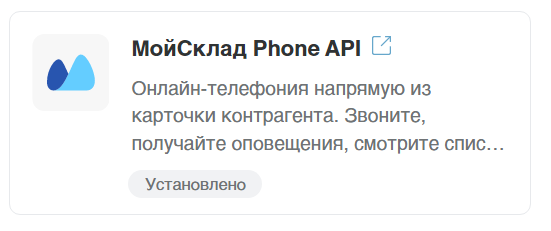 8. Поставьте «галочку» напротив «Установлено» и нажмите «Сохранить». Убедитесь, что в карточке приложения «МойСклад Phone API» появилась надпись «Установлено».