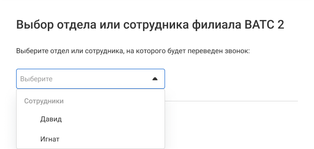 3.Ниже в раскрывающемся списке «Сотрудник или отдел» выберите другую АТС.