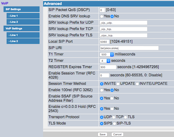 - REGISTER Expires Timer — выставьте 300.