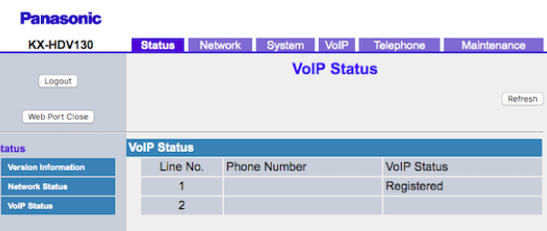 4. В разделе VoIP Status статус регистрации изменился на Registered.