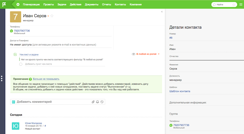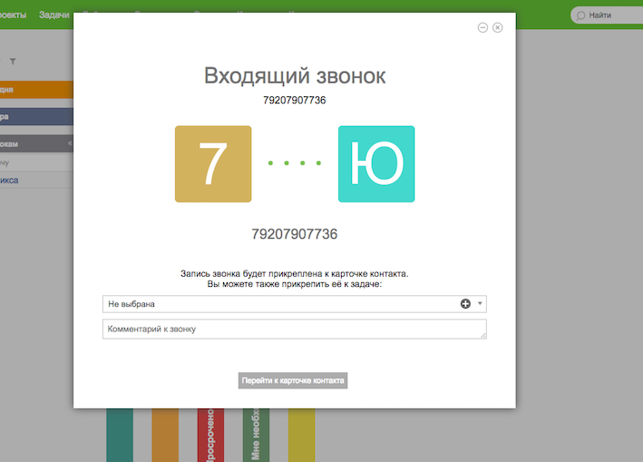 Если новый клиент позвонил в компанию и его номера еще нет в контактах, «ПланФикс» автоматически создаст контакт. В качестве имени будет указан номер клиента.