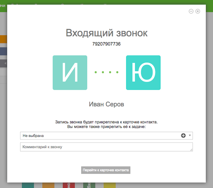 1. Всплывающая карточка клиента при входящем звонке
