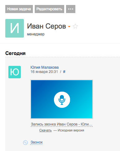 Вы можете прослушать и скачать запись удачного разговора в карточке контакта.