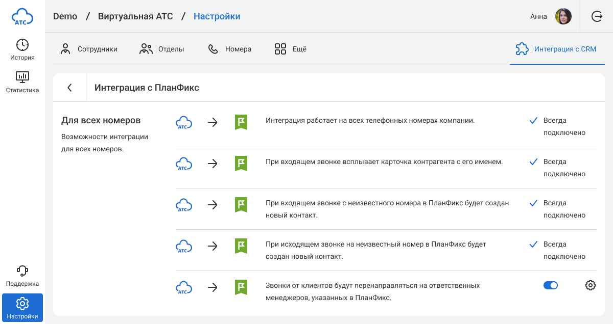 Интеграция «ПланФикс» и Виртуальной АТС