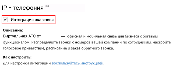 Теперь зайдите в настройки вашей Виртуальной АТС в раздел “Интеграции с CRM” и выберите интеграцию с вашей CRM.