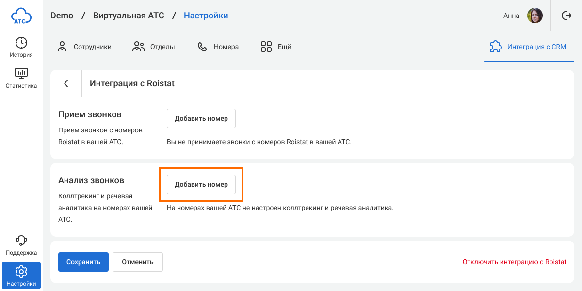 Если вы подключили номера в Roistat, свяжите их с номерами Виртуальной АТС. Вы сможете анализировать звонки с номеров Roistat в Истории и Статистике ВАТС, а за переадресацию таких звонков на ваши мобильные телефоны платить не придется.
