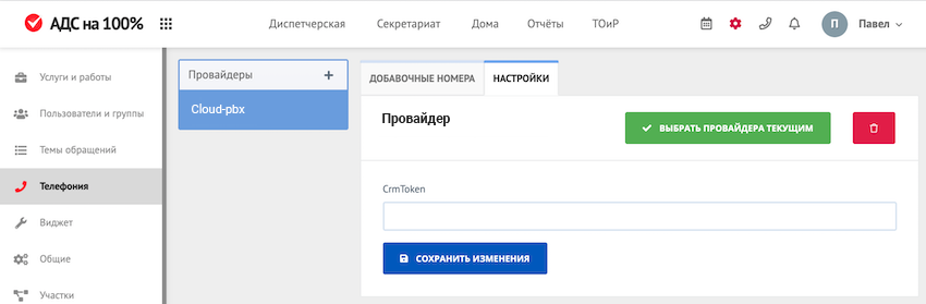 - Адрес вашей CRM — вставьте ссылку: https://dispatch.roskvartal.ru/api/telephony/cloud-pbx.