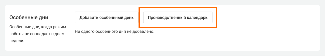 1. В настройках расписания номера перейдите к разделу «Особенные дни» и нажмите на кнопку «Производственный календарь».