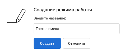 В поле «Режим работы» выберите «Создать новый».