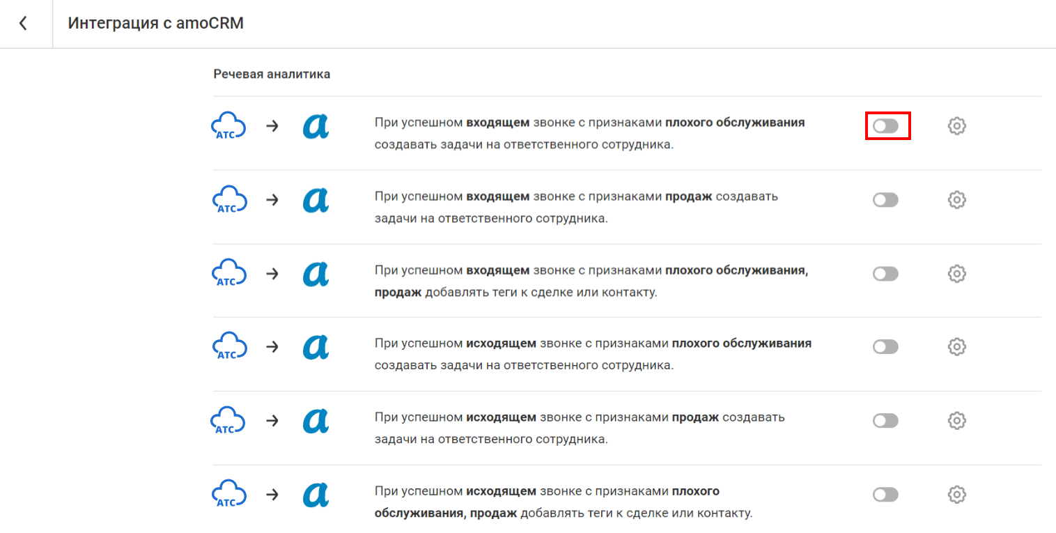 Настройки Речевой аналитики в интеграции с amoCRM