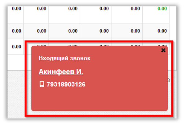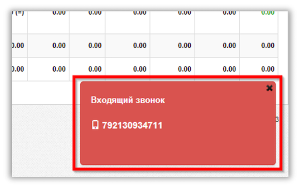 При входящем звонке на ваш внутренний номер, появляется уведомление о входящем звонке.