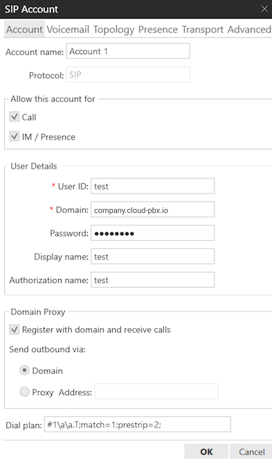 4. В открывшемся окне можно придумать и ввести название аккаунта, ввести имя пользователя, пароль и адрес домена. Нажмите ОК.