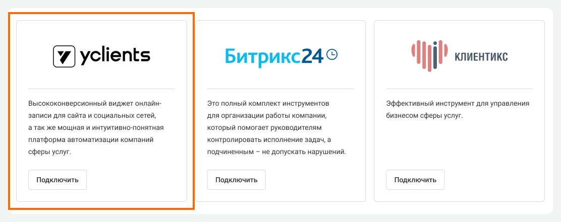 Вы снова окажетесь в общем окне интеграций, но теперь статус виджета YClients изменится на «Подключено».