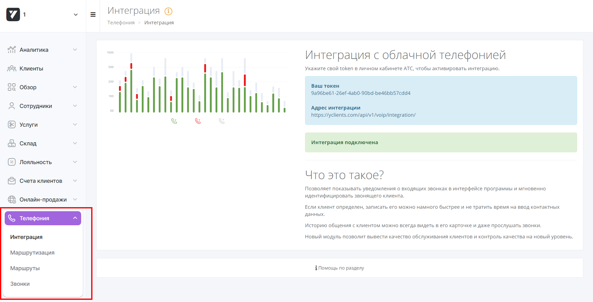 Настройка завершена. Теперь телефония будет работать в YCLIENTS.