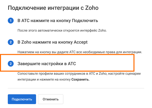 Инструкция по интеграции Zoho CRM и АТС