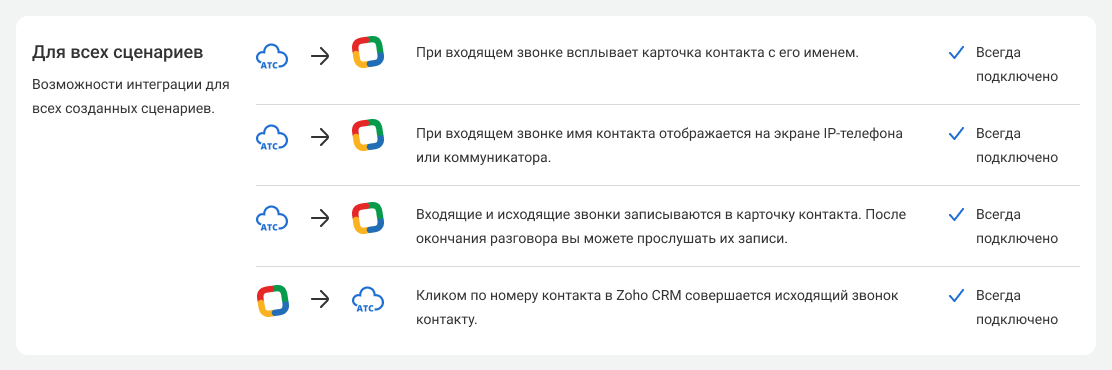 На этой странице описываются шаги по подключению и настройке интеграции Zoho CRM и АТС. Чтобы выполнить их, проверьте, что обладаете правами администратора в обеих системах.